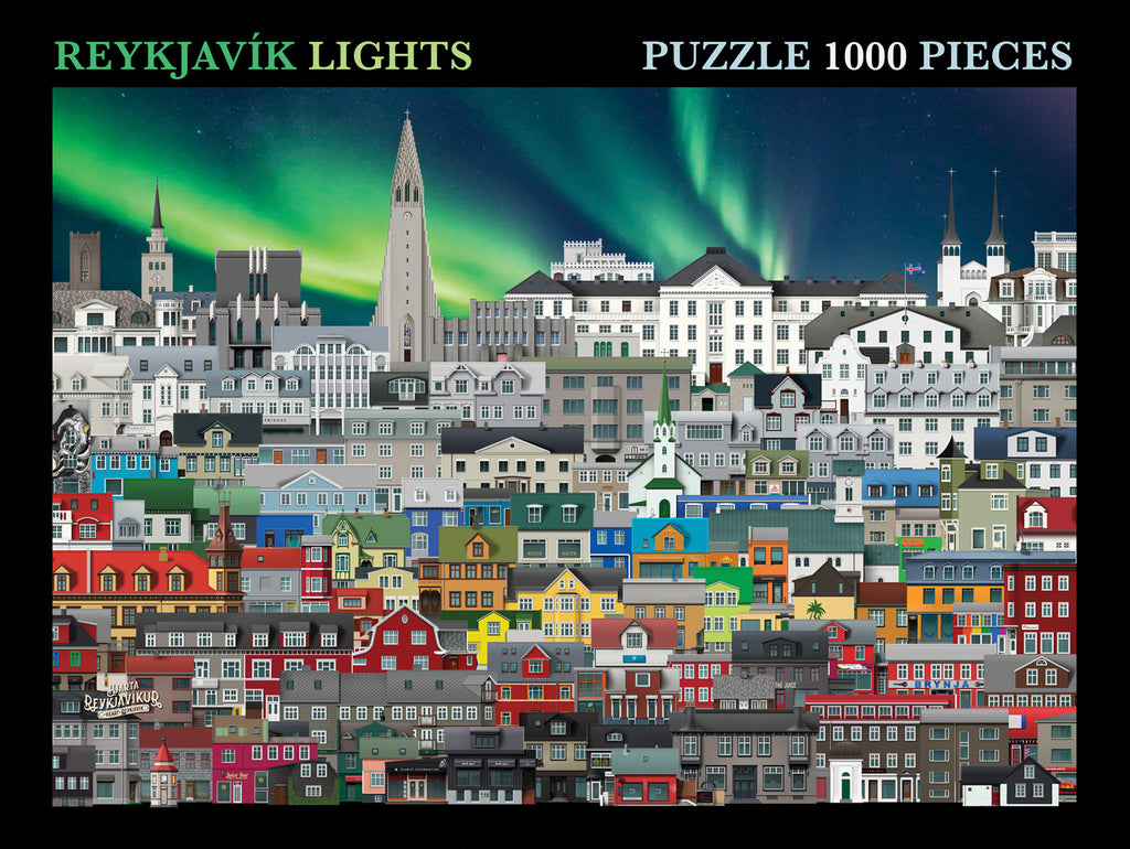 Hér lúrir miðborgin undir norðurljósum í þessu 1000 bita púsli frá Hjarta Reykjavíkur.
